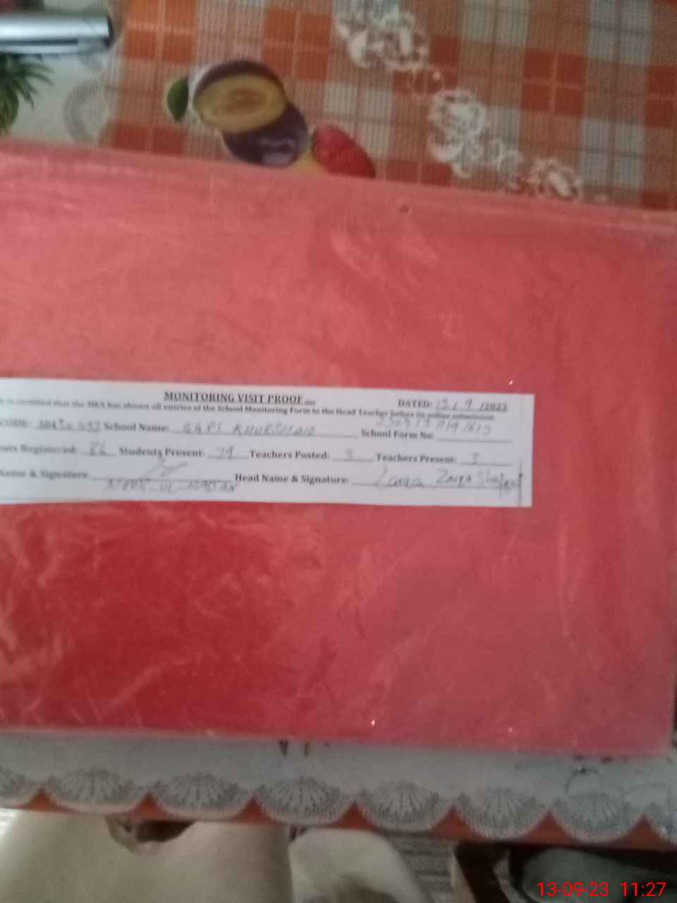 | Attendance Register | Head Teacher | MEA with School | Visit Proof |