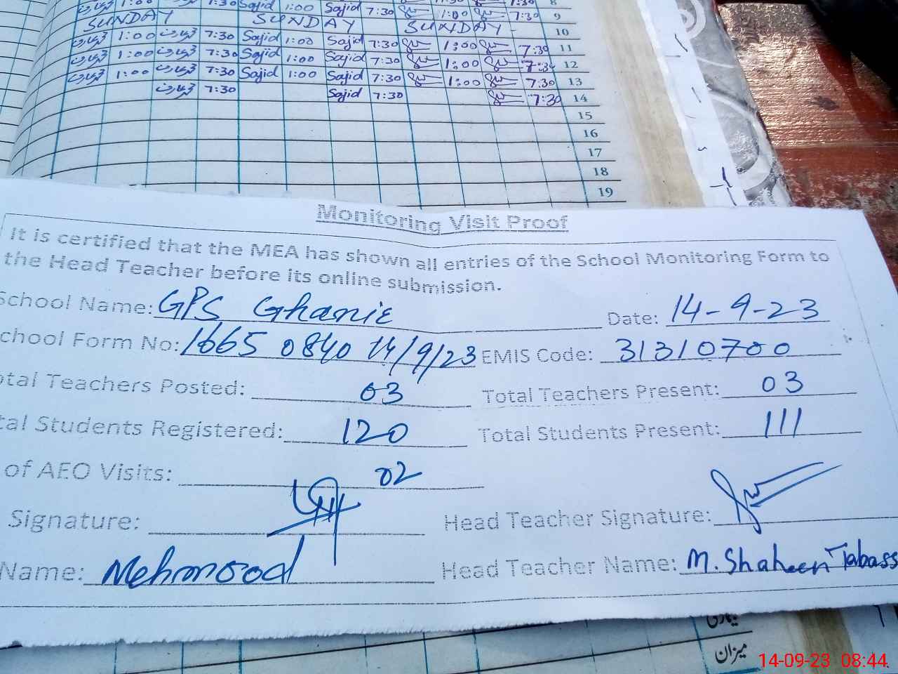 | EMIS Code: 31310700 | Name of School: GPS GHANIR | |||