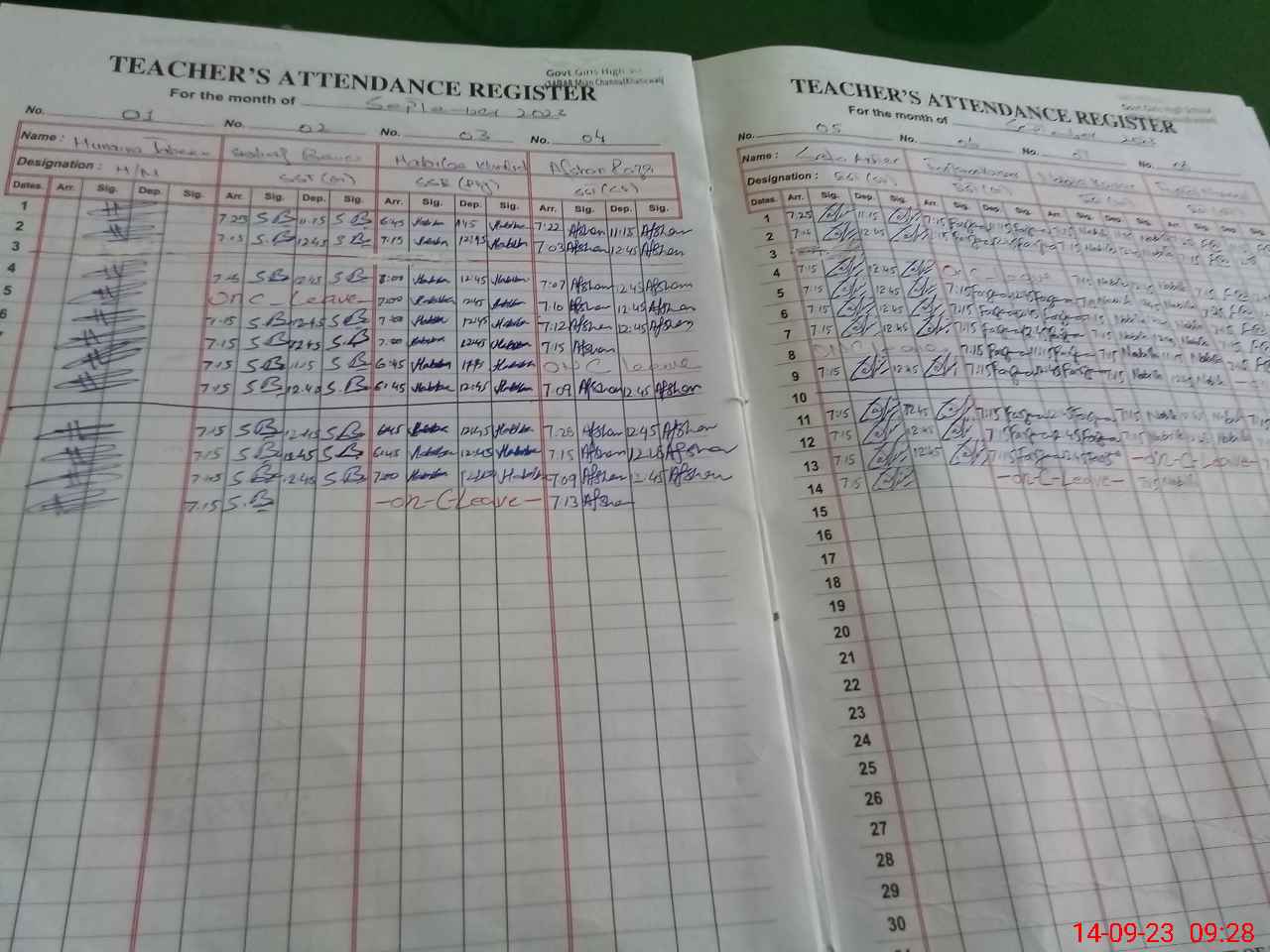 | CNIC | Full Name | Designation | R/C | Absence During Last Calender Month |