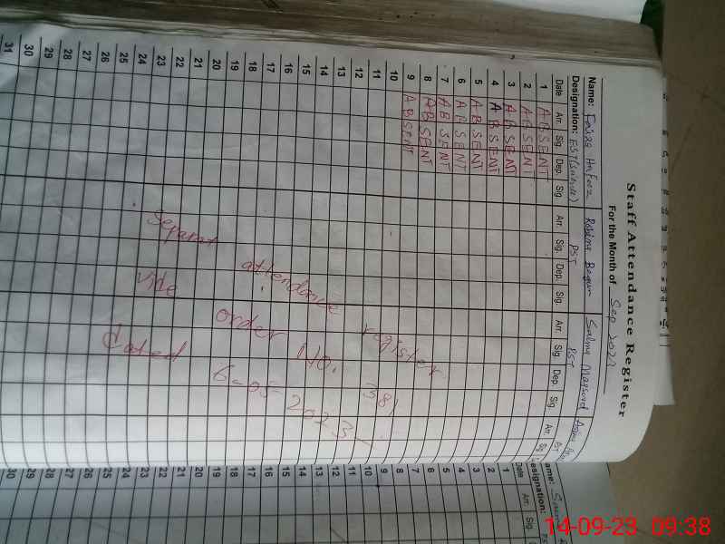 | 37**** | Fa**** Ha**** | Regular | 0 | 0 | 31 | 0 | 0 | 0 | 0 | 0 | 0 | Absent (Un-Authorized) | |