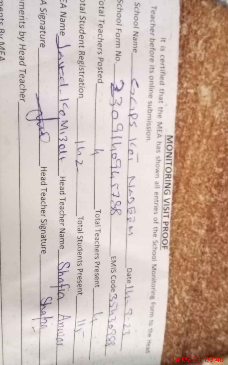 | EMIS Code: 35430988 | Name of School: GGPS KOT NADEEM | |||