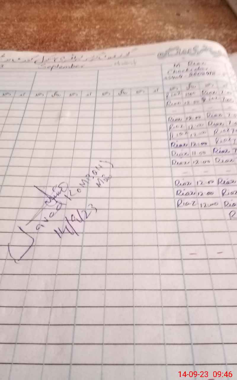 | Monitoring Date: 14-09-2023 | Start Time: 14-09-2023 09:08 AM | End Time: 14-09-2023 09:46 AM | Name of MEA: Ja**** Iq**** | |