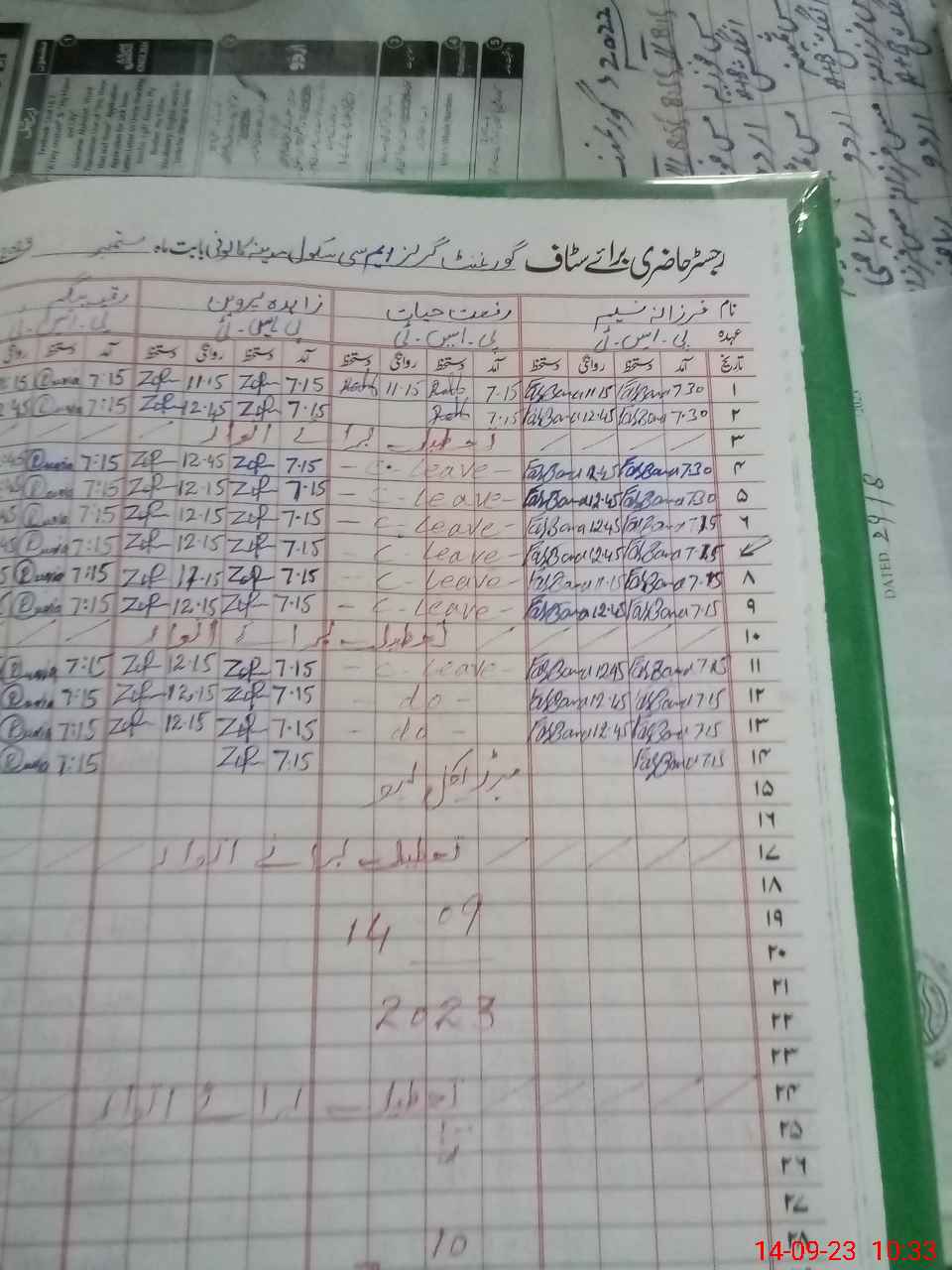 | Leave | Duty | Absent | Maternity | Medical | Ex- Pak |