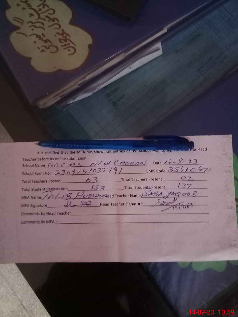 | EMIS Code: 35410471 | Name of School: GGCMS NEW CHOHAN | |||