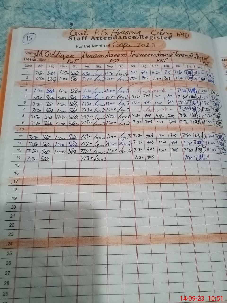 | CNIC | Full Name | Designation | R/C | Absence During Last Calender Month |