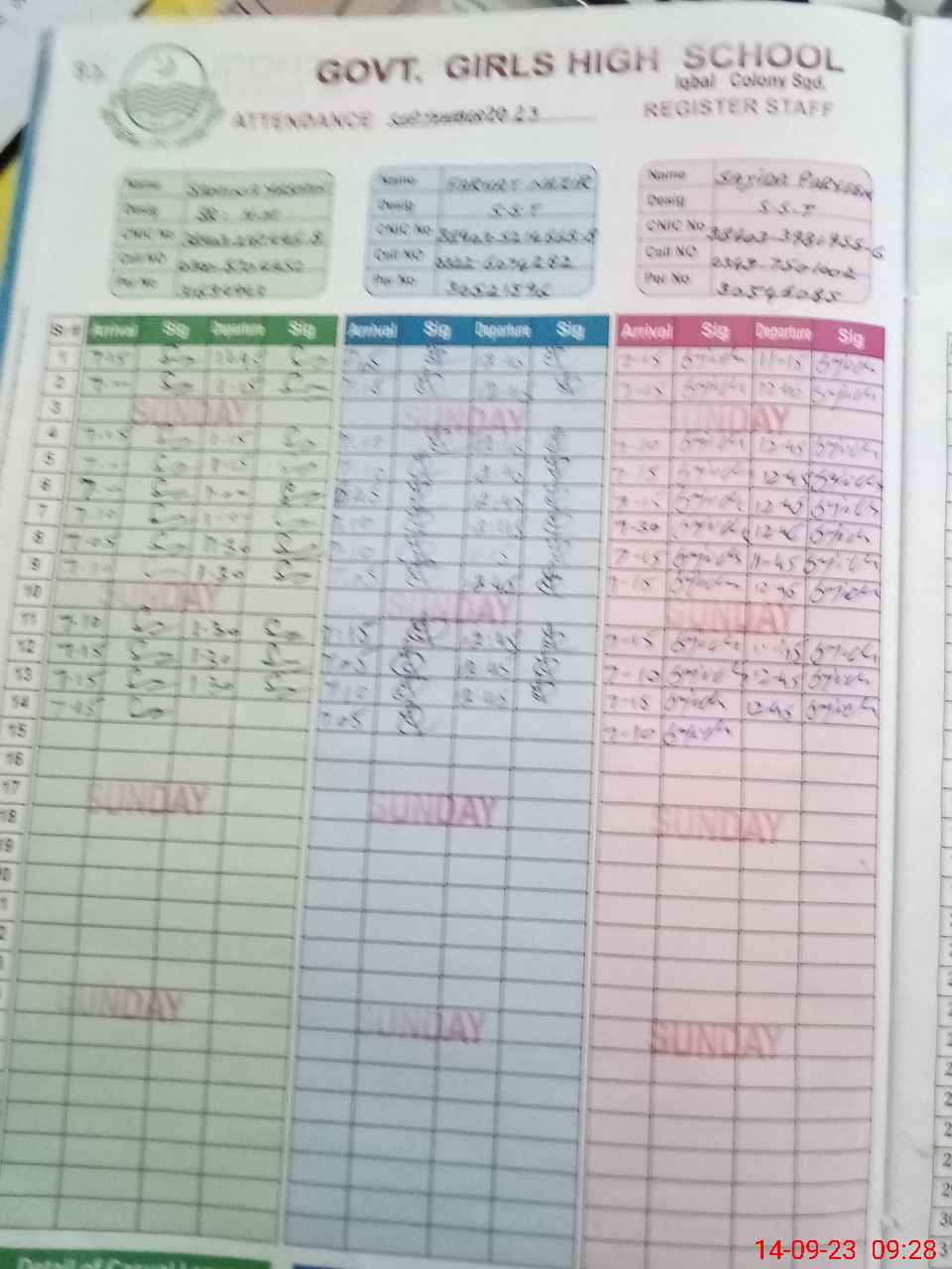 | EMIS Code: 38420222 | Name of School: GGHS IQBAL COLONY SARGODHA | |||