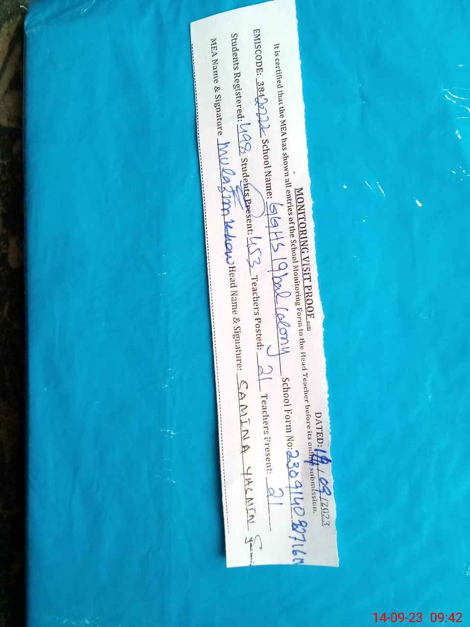 | Attendance Register | Head Teacher | MEA with School | Visit Proof |