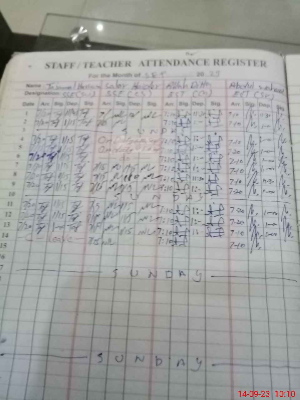| CNIC | Full Name | Designation | R/C | Absence During Last Calender Month |