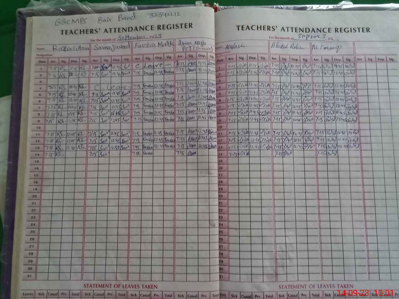 | Monitoring Date: 14-09-2023 | Start Time: 14-09-2023 09:57 AM | End Time: 14-09-2023 10:32 AM | Name of MEA: Ab**** Gh**** | |