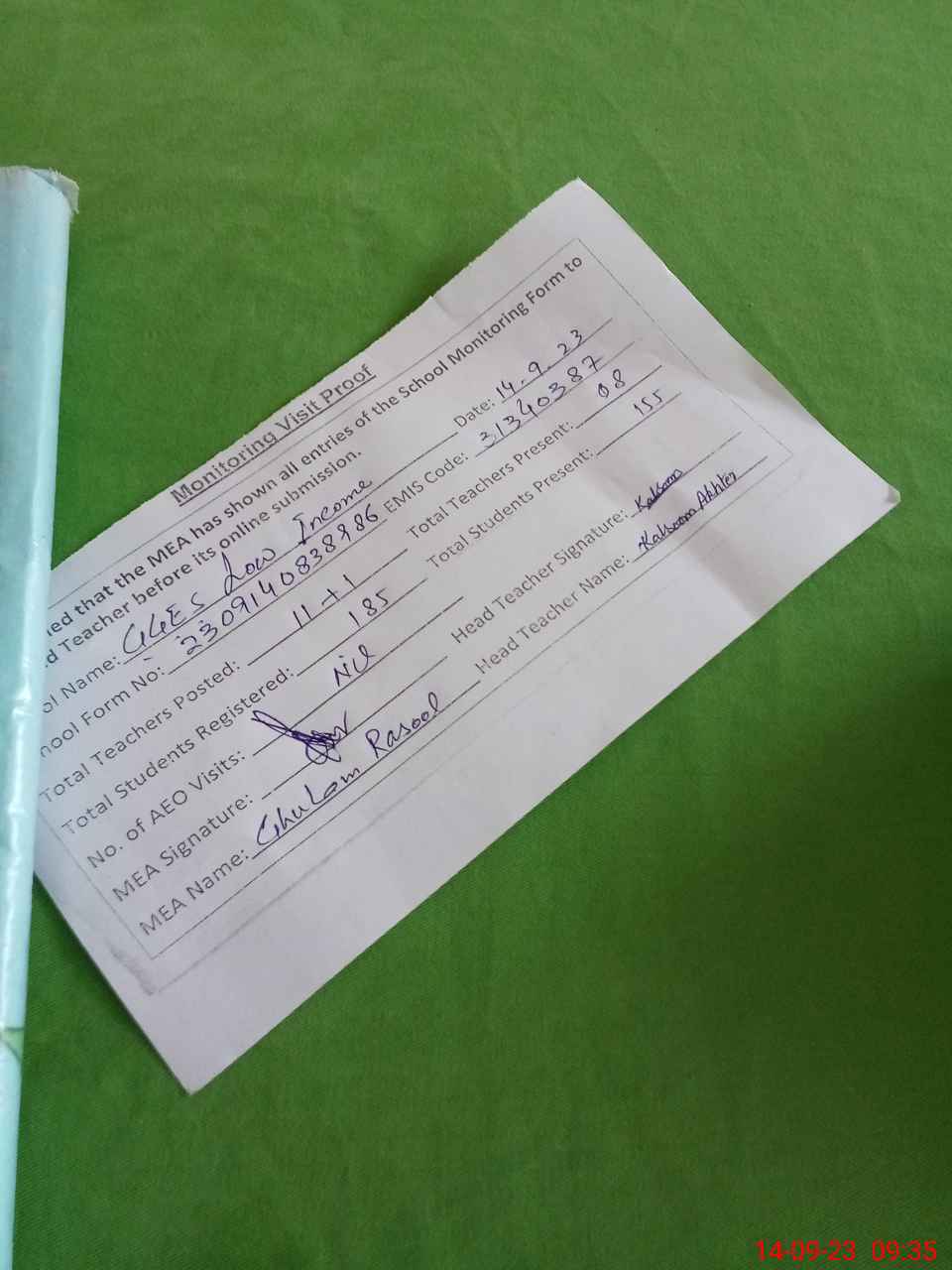 | EMIS Code: 31340387 | Name of School: GGES LOW INCOME SCHEME NO.2 MODEL TOWN | |||