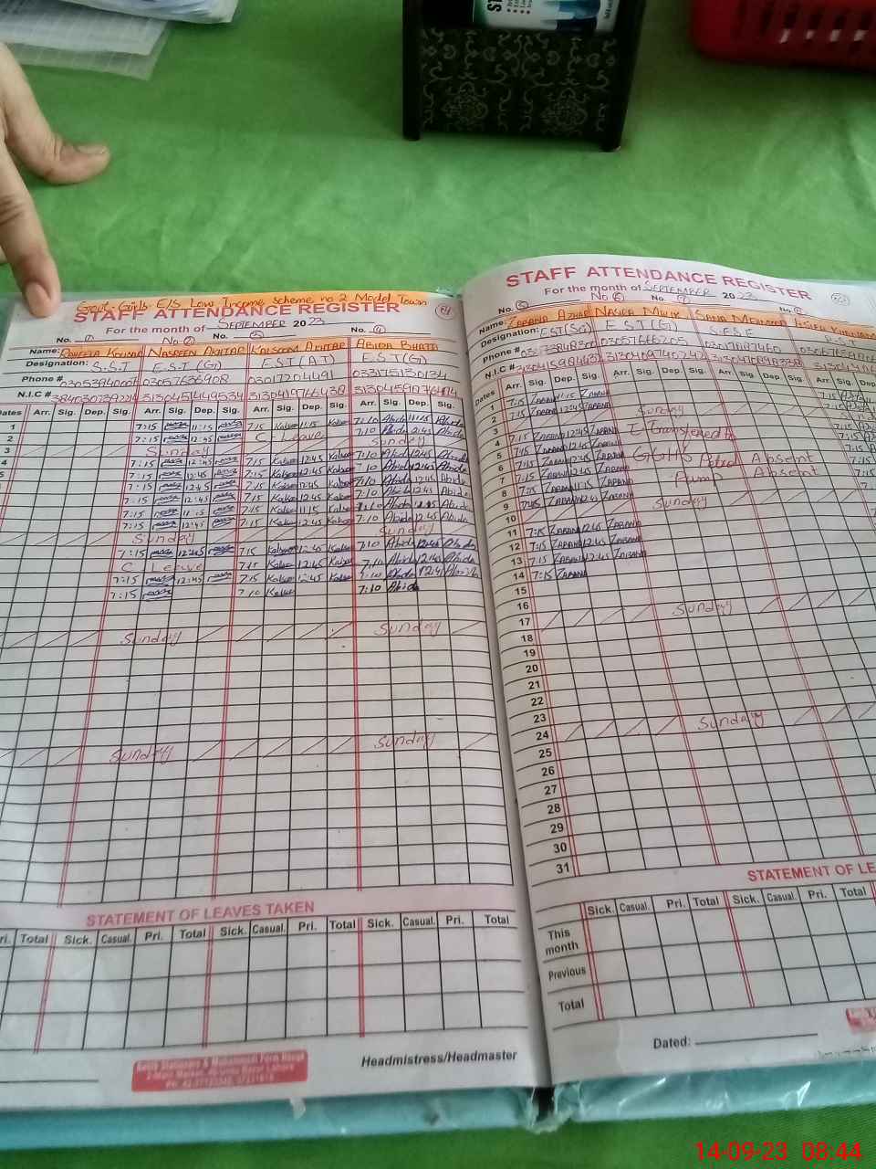 | Name: AB**** BH**** Designation: (School Headmaster's/Headmistress's) EST Phone/Cell Number: 03**** |
