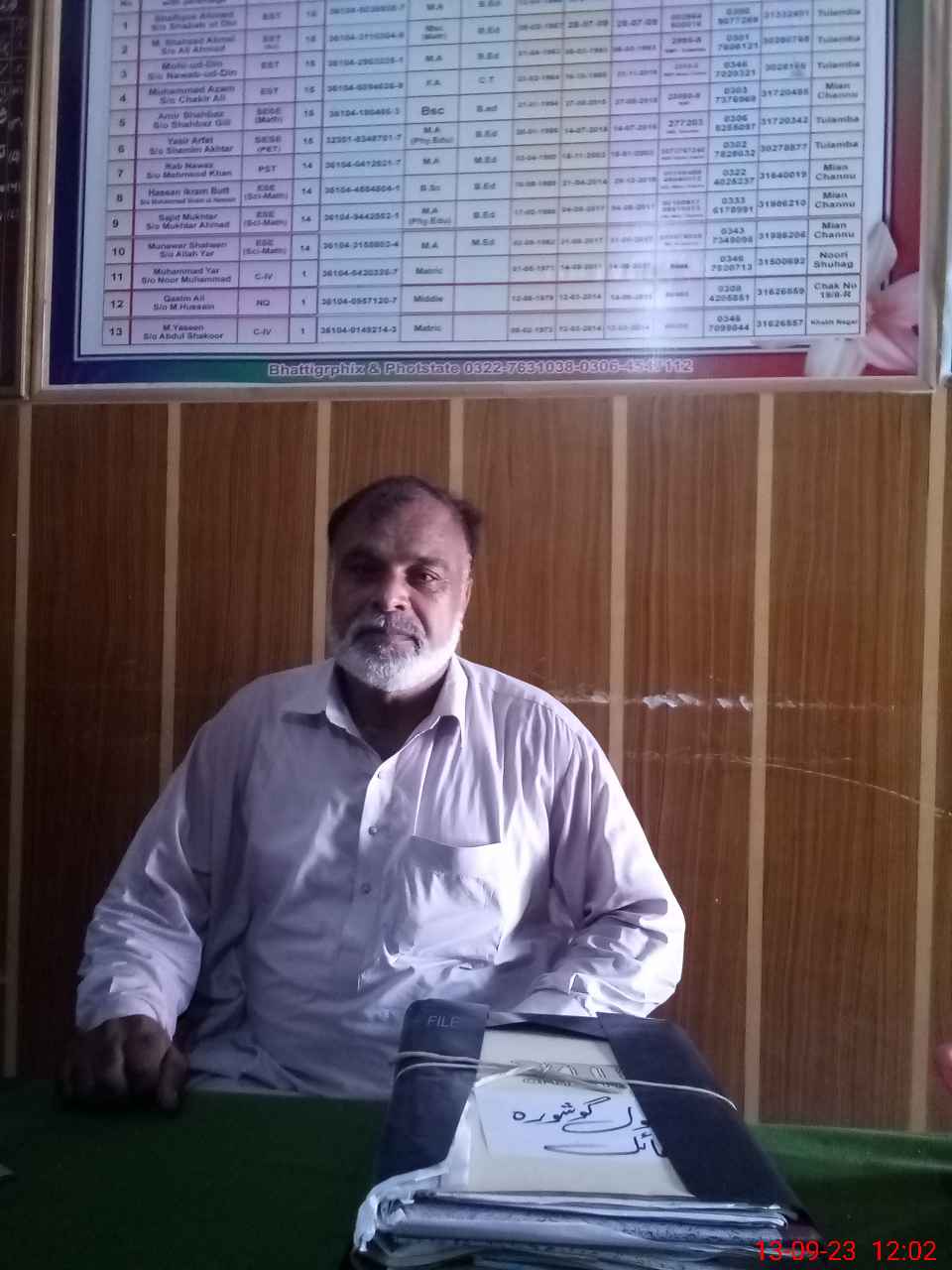 | Name: Sh**** Ah**** Designation: (School Headmaster's/Headmistress's) EST Phone/Cell Number: 03**** |