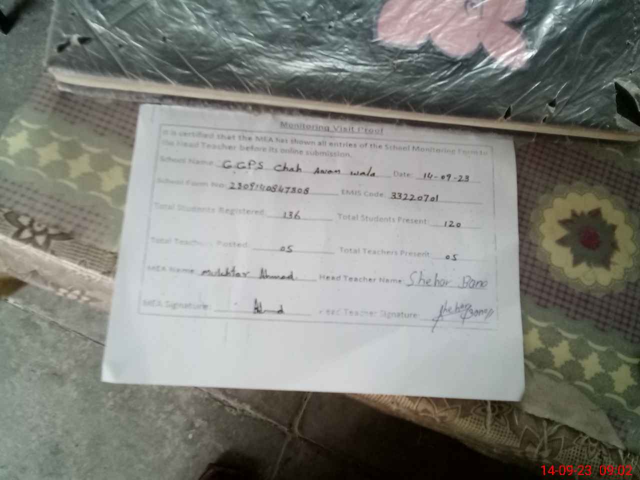 | EMIS Code: 33220701 | Name of School: GGPS CHAH AWAN WALA | |||