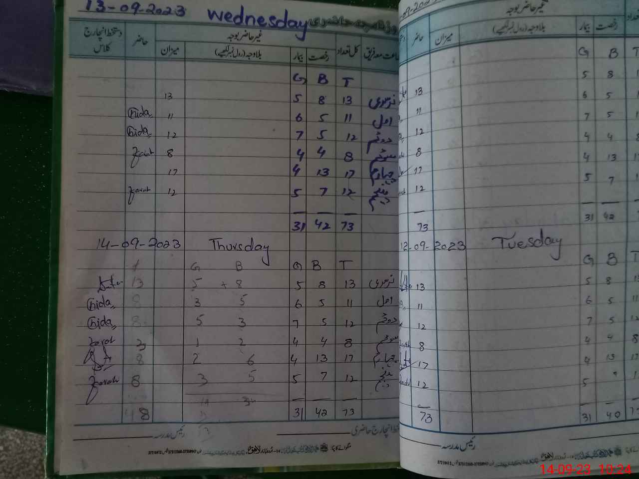 | No. of Students Present - Female | 0 | 0 | 5 | 3 | 5 | 1 | 2 | 3 | 19 | |||||||