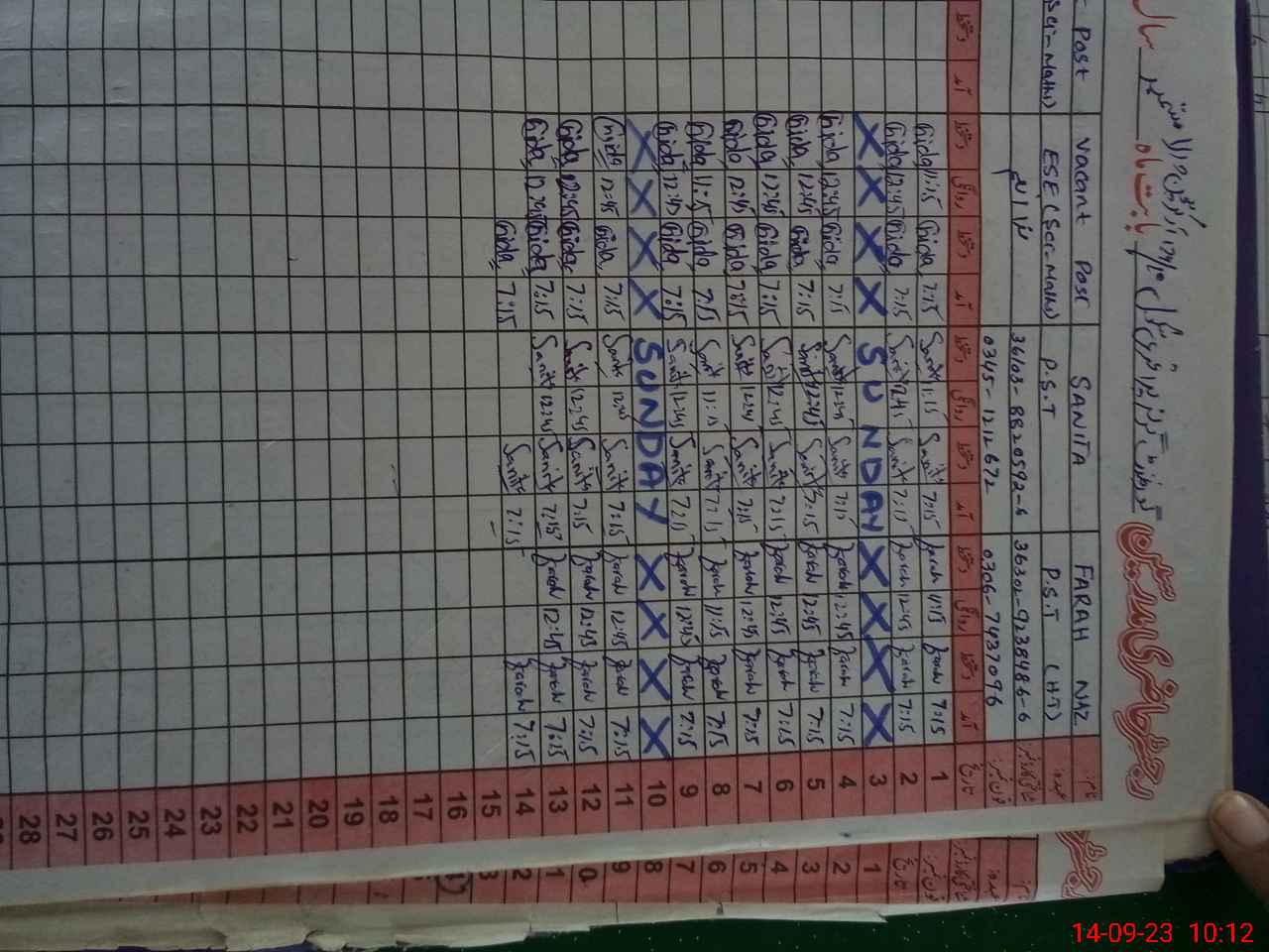 | Name: Fa**** Na**** Designation: (School Headmaster's/Headmistress's) Ese Sci Math Phone/Cell Number: 03**** |