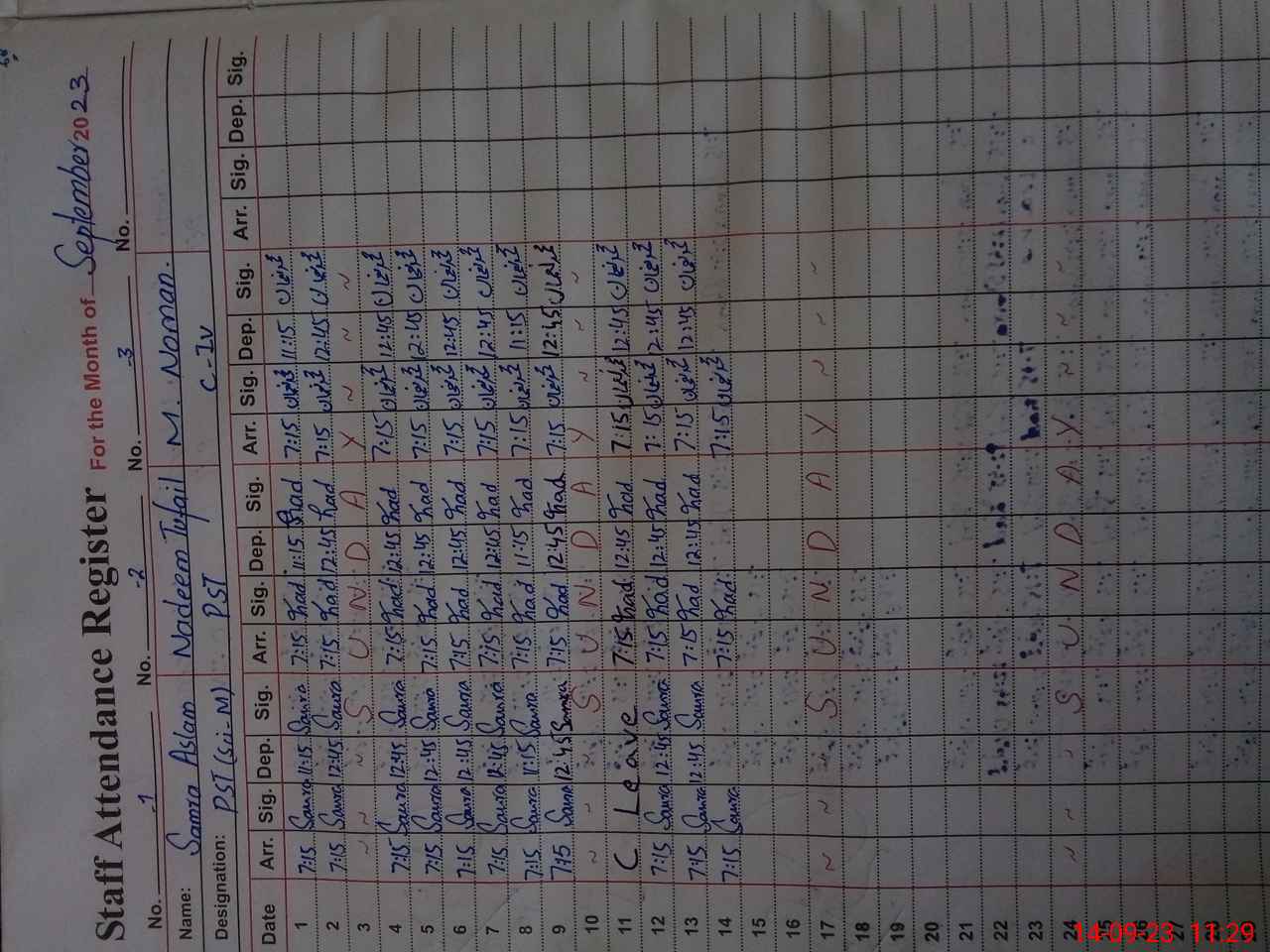 | CNIC | Full Name | Designation | R/C | Absence During Last Calender Month |