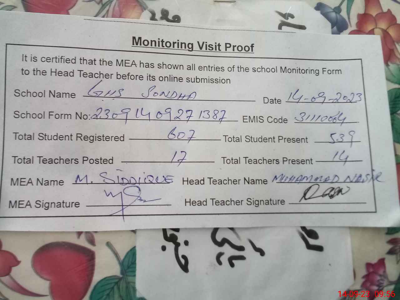 | EMIS Code: 31110004 | Name of School: GHS SONDHA | |||
