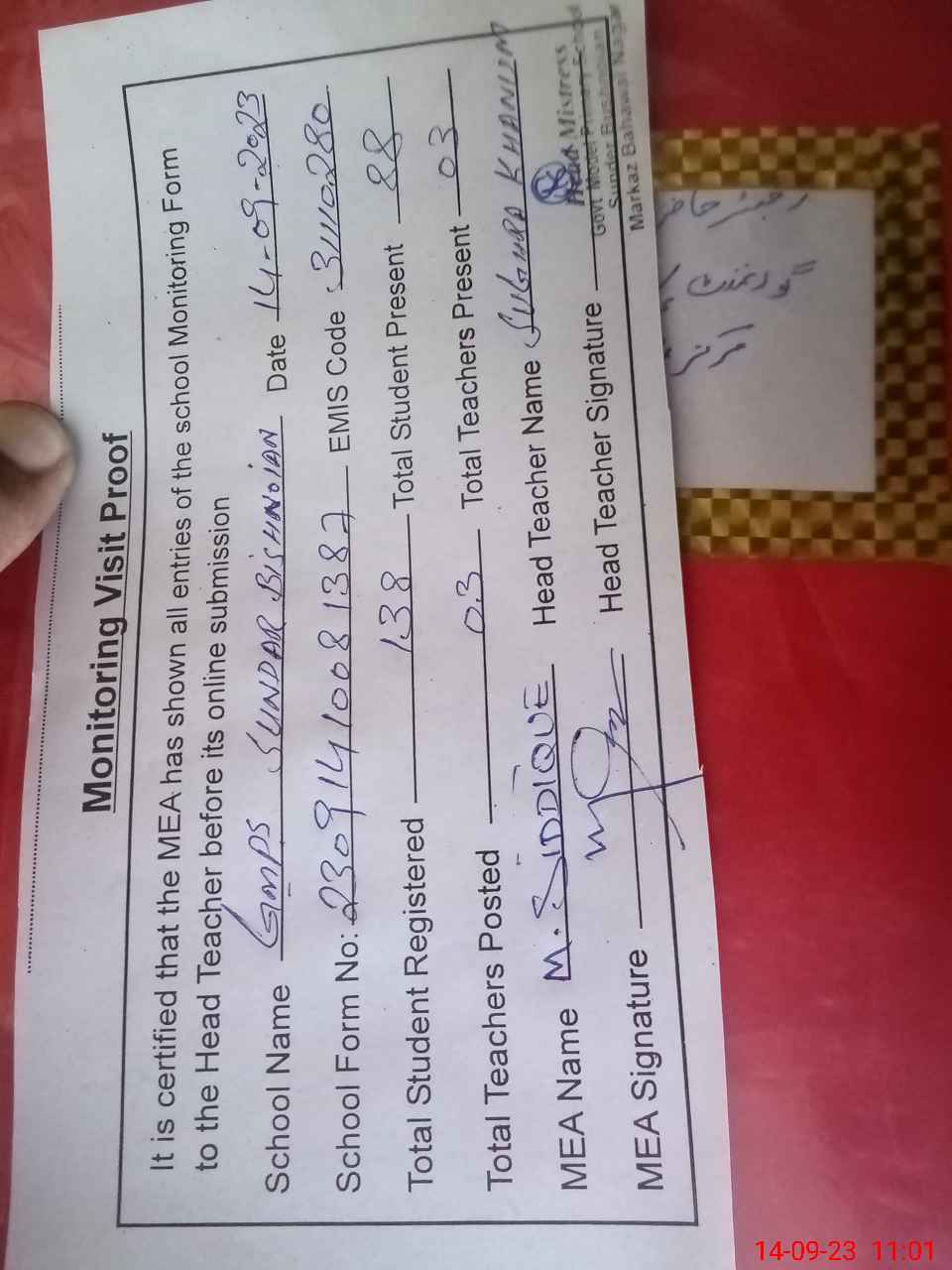 | EMIS Code: 31110280 | Name of School: GMPS SUNDAR BISHNOIAN | |||