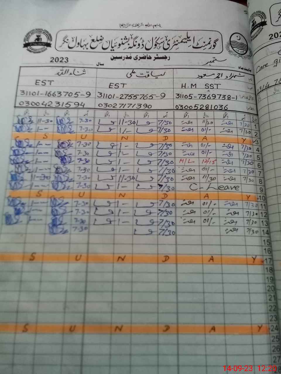 | Name: AbRa**** Designation: (School Headmaster's/Headmistress's) EST HT Phone/Cell Number: 03**** |