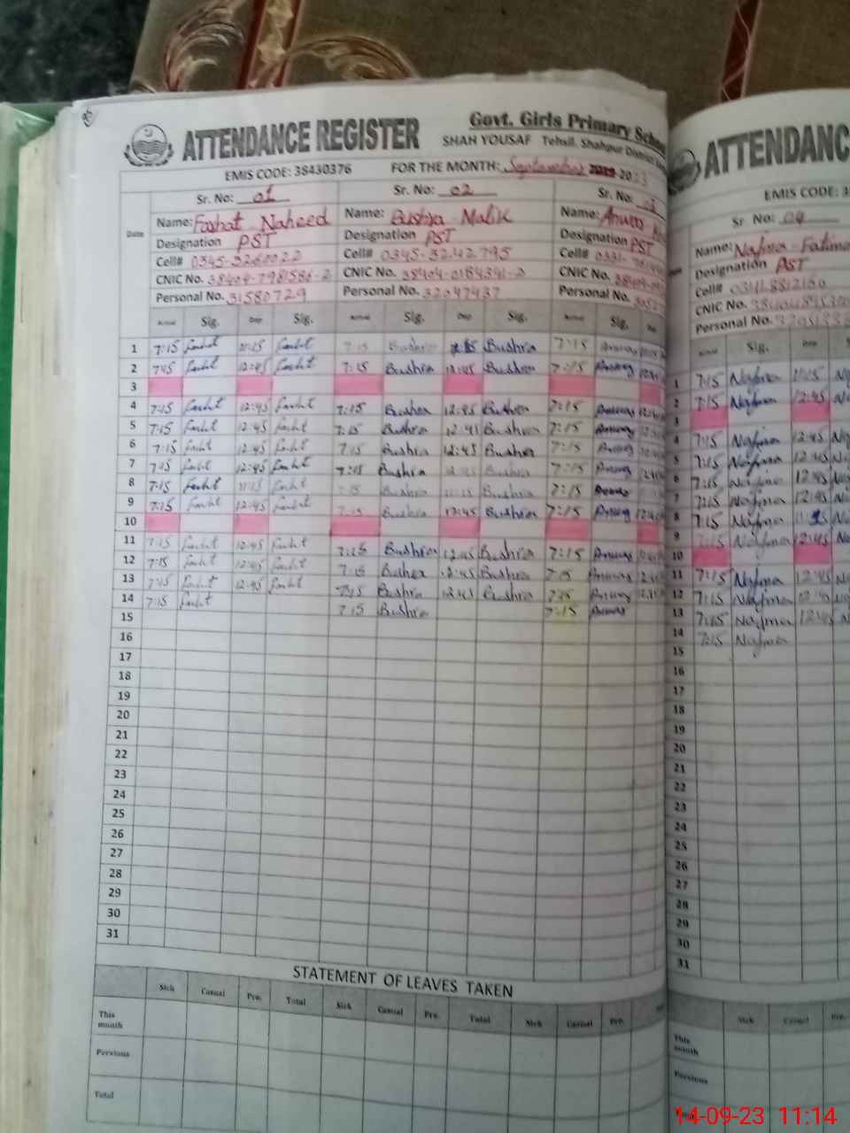 | Name: FA**** NA**** Designation: (School Headmaster's/Headmistress's) PST Phone/Cell Number: 03**** |