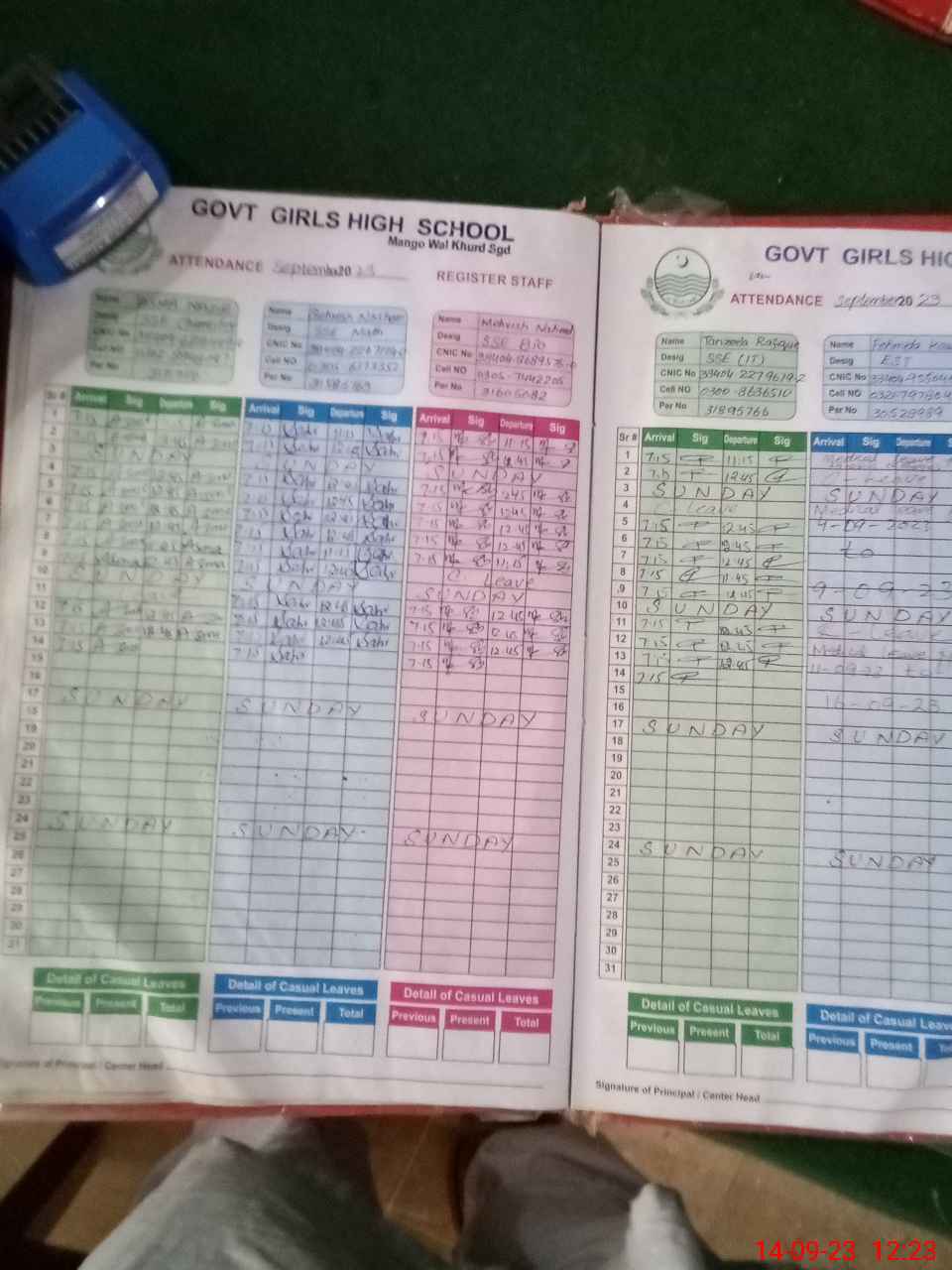 | CNIC | Full Name | Designation | R/C | Absence During Last Calender Month |