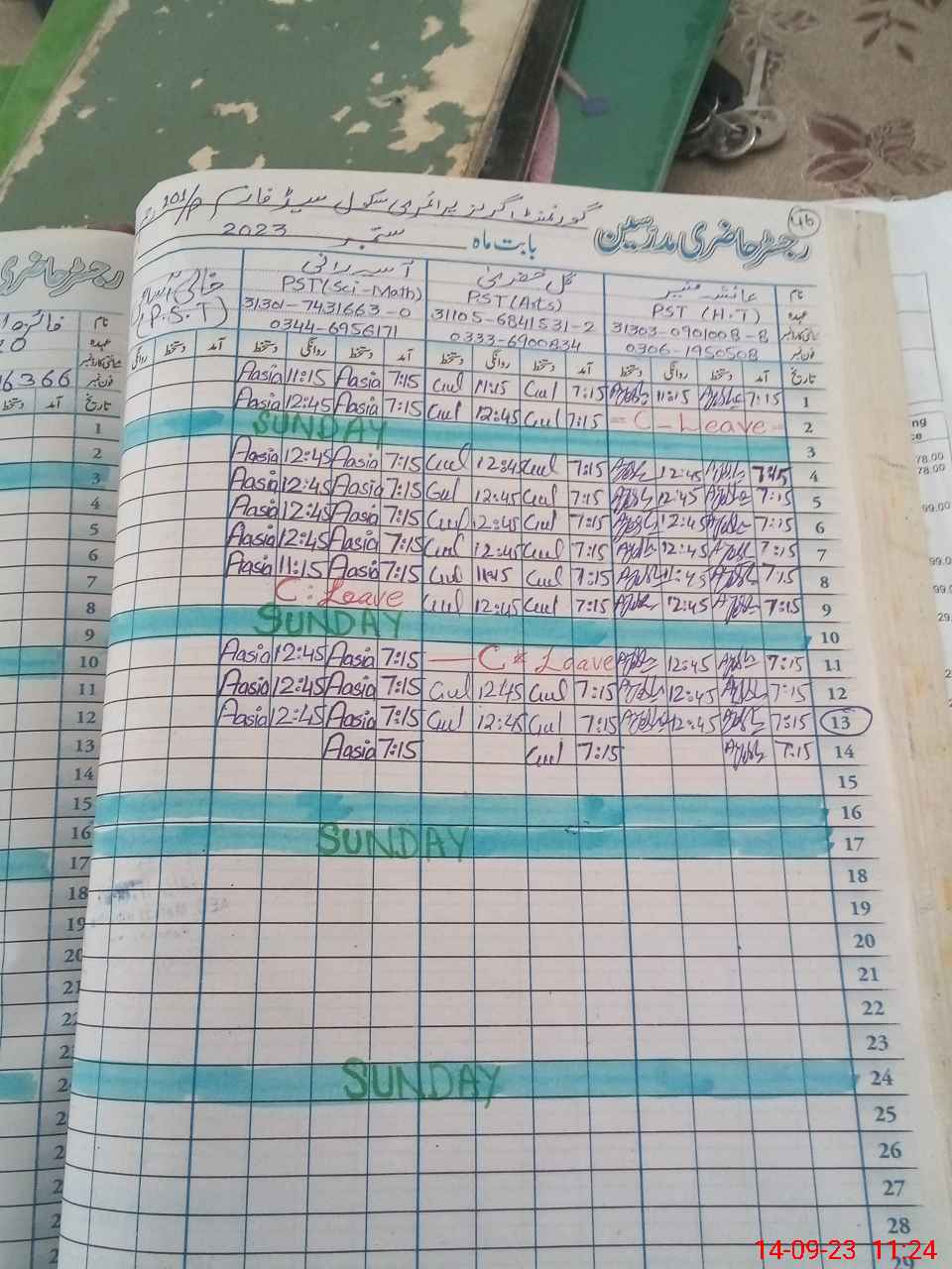 | Name: Ay**** Mu**** Designation: (School Headmaster's/Headmistress's) PST Phone/Cell Number: 03**** |