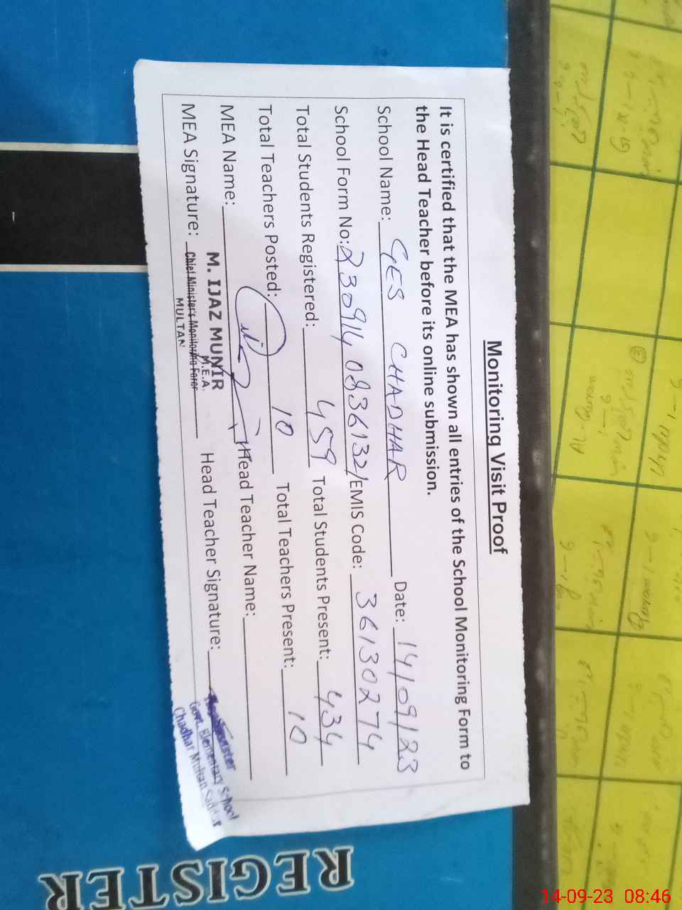 | EMIS Code: 36130274 | Name of School: GES CHADHAR | |||