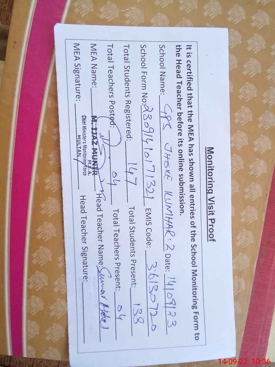 | EMIS Code: 36130720 | Name of School: GPS JHOKE KUMHAR WALI NO. 2 | |||