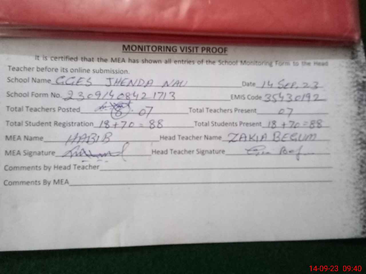 | EMIS Code: 35430192 | Name of School: GGES JHENDA NAU | |||