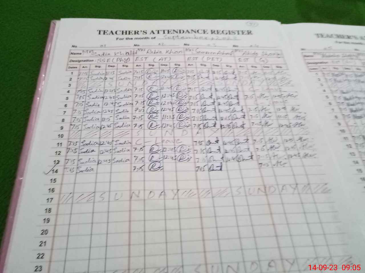 | CNIC | Full Name | Designation | R/C | Absence During Last Calender Month |