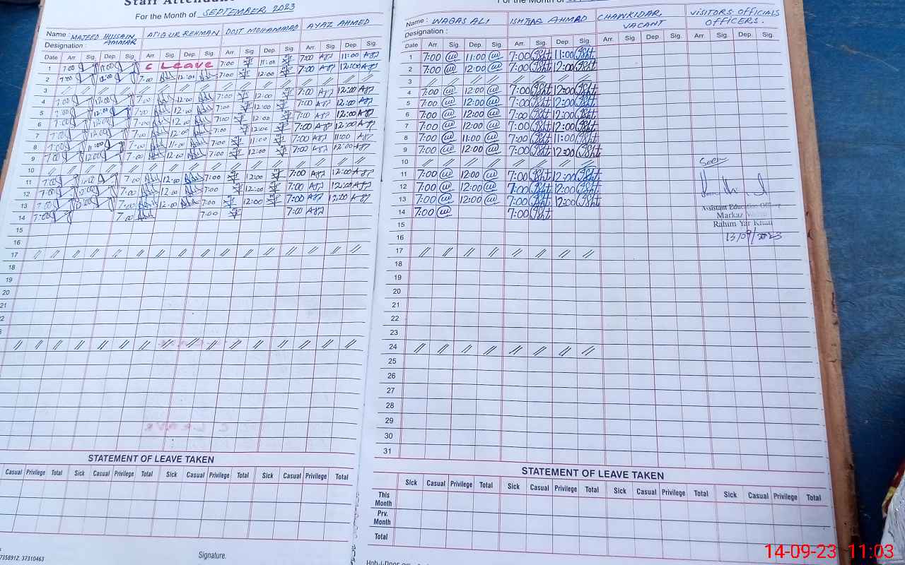 | Attendance Register | Head Teacher | MEA with School | Visit Proof |