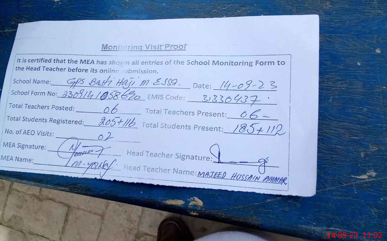 | EMIS Code: 31330437 | Name of School: GPS BASTI HAJI M. ESSA | |||
