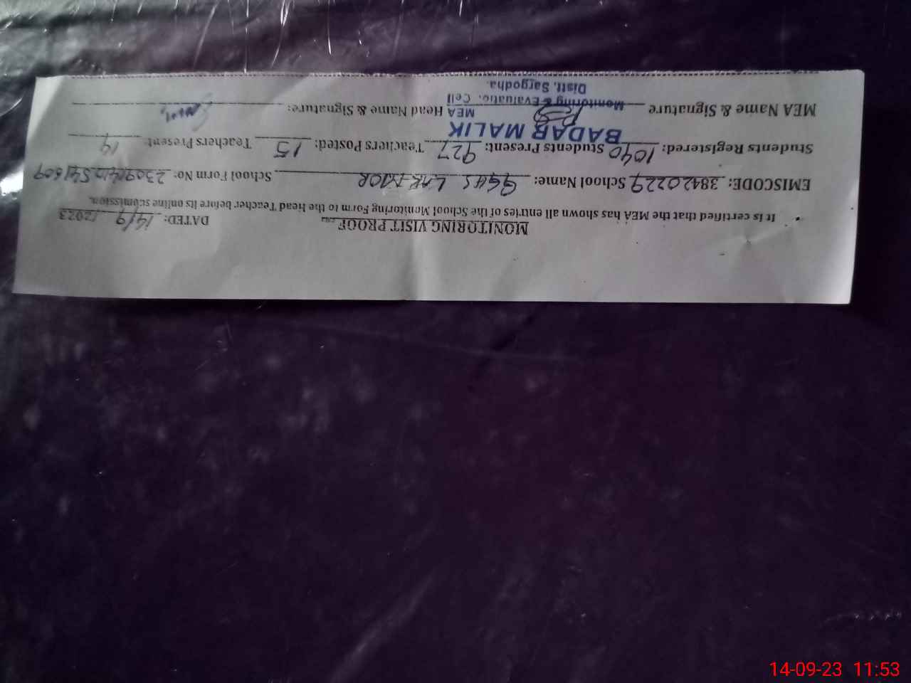 | Certified that this School was Inspected by the Undersigned MEA/DMO Today and the Information Stated Above is as Per Record. | |||||