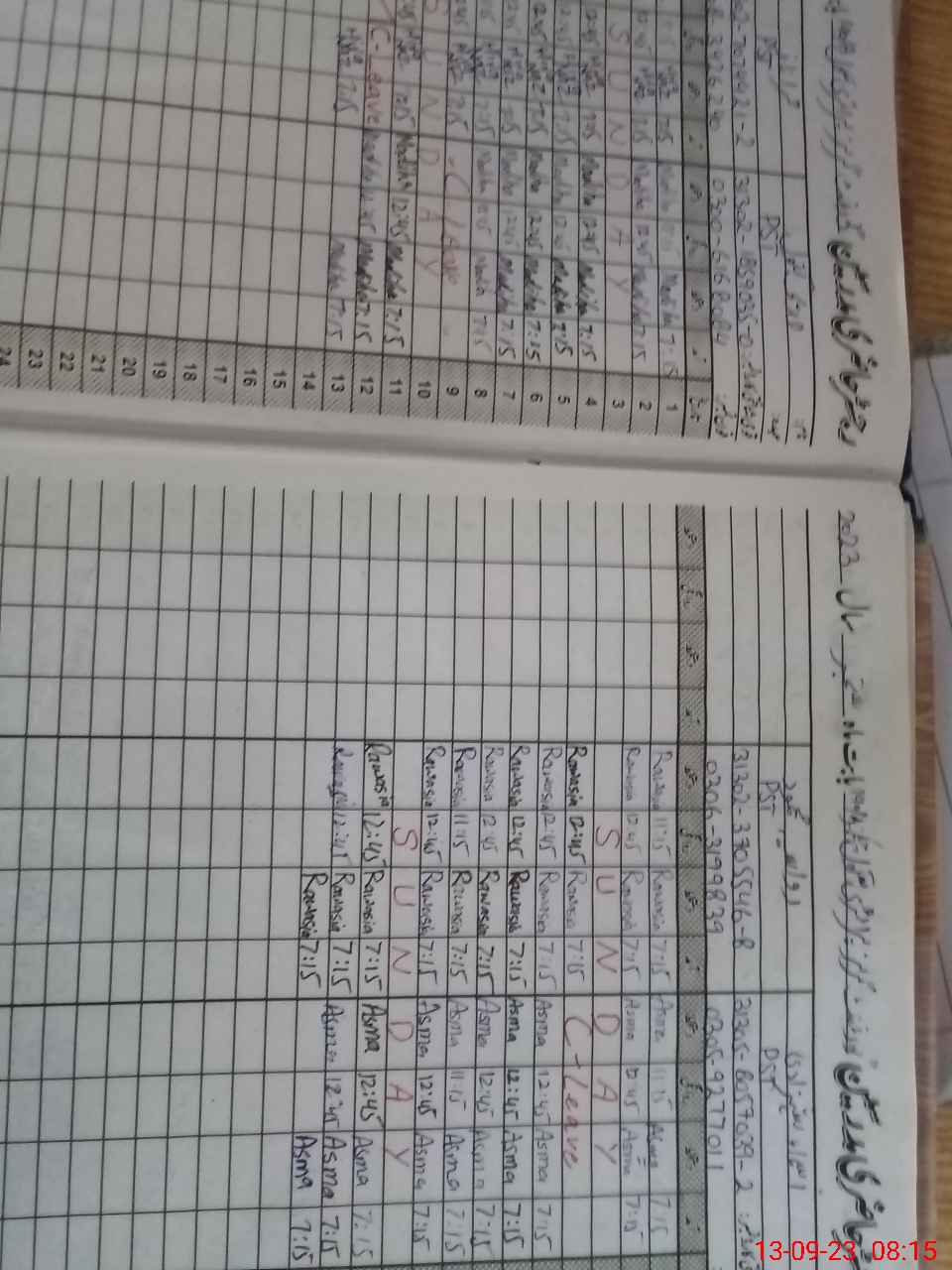 | CNIC | Full Name | Designation | R/C | Absence During Last Calender Month |