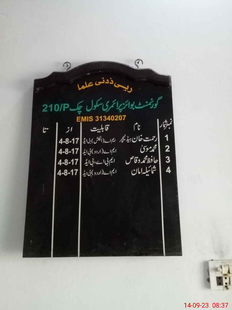 | EMIS Code: 31340207 | Name of School: GPS CHAK NO 210 P | |||