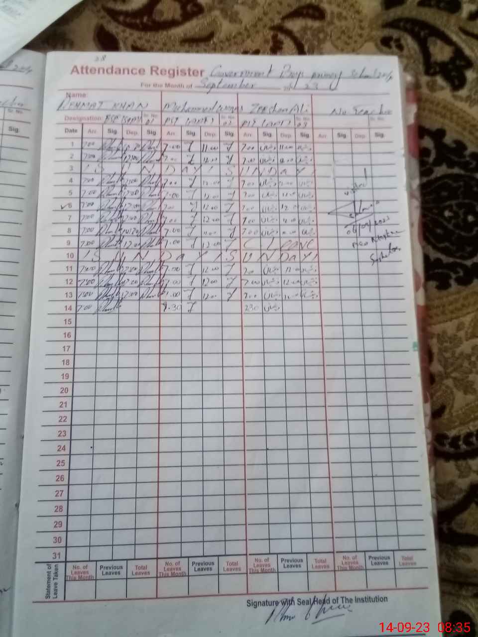 | Name: Re**** Kh**** Designation: (School Headmaster's/Headmistress's) PST Phone/Cell Number: 03**** |