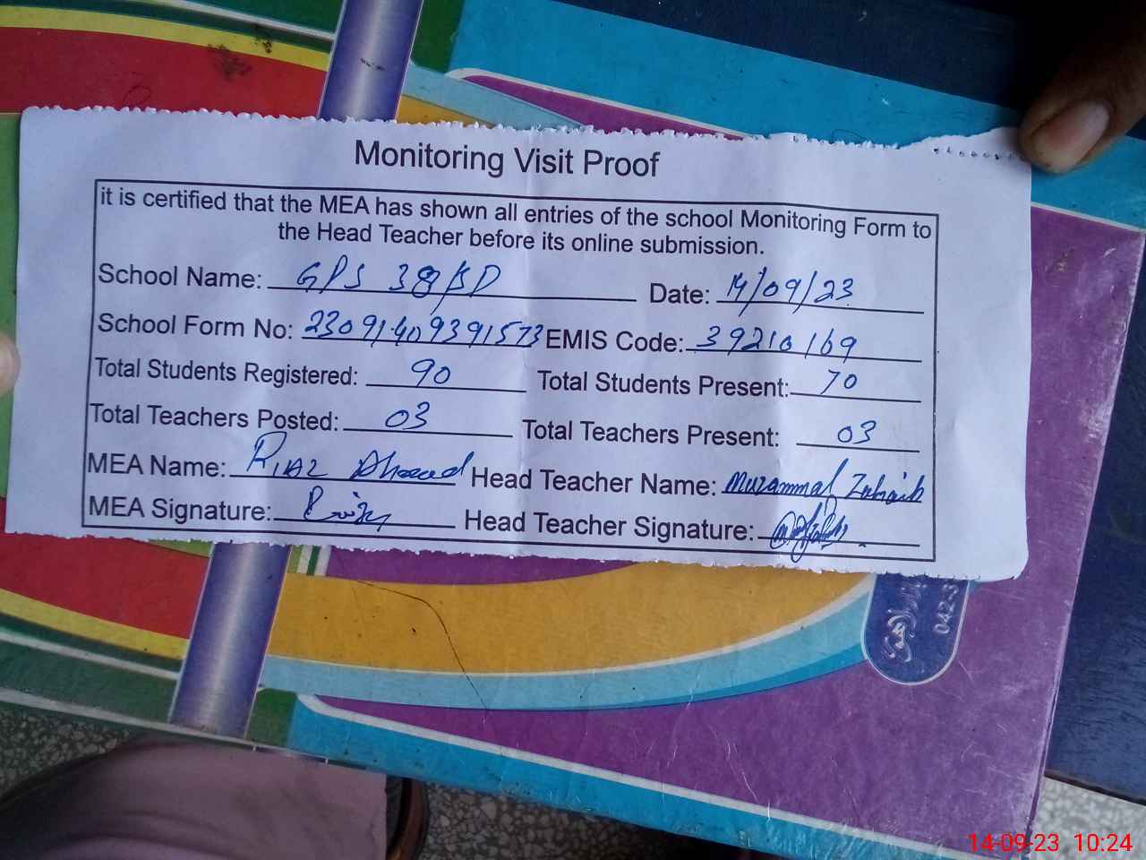 | EMIS Code: 39210169 | Name of School: GPS 38 SP | |||