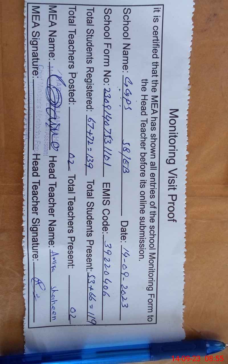 | EMIS Code: 39220406 | Name of School: GGPS 58 EB PO 58 EB | |||