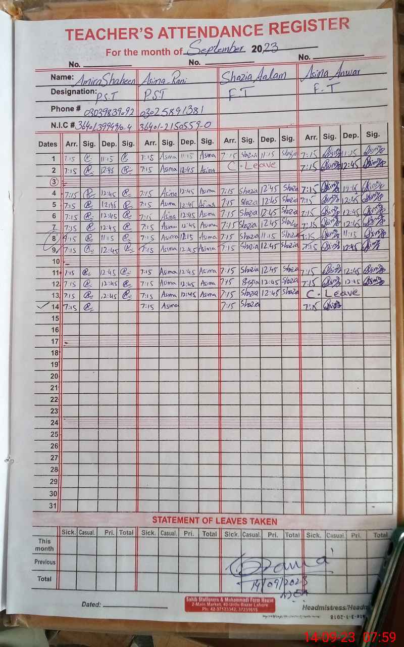 | Name: AM**** SH**** Designation: (School Headmaster's/Headmistress's) PST Phone/Cell Number: 03**** |
