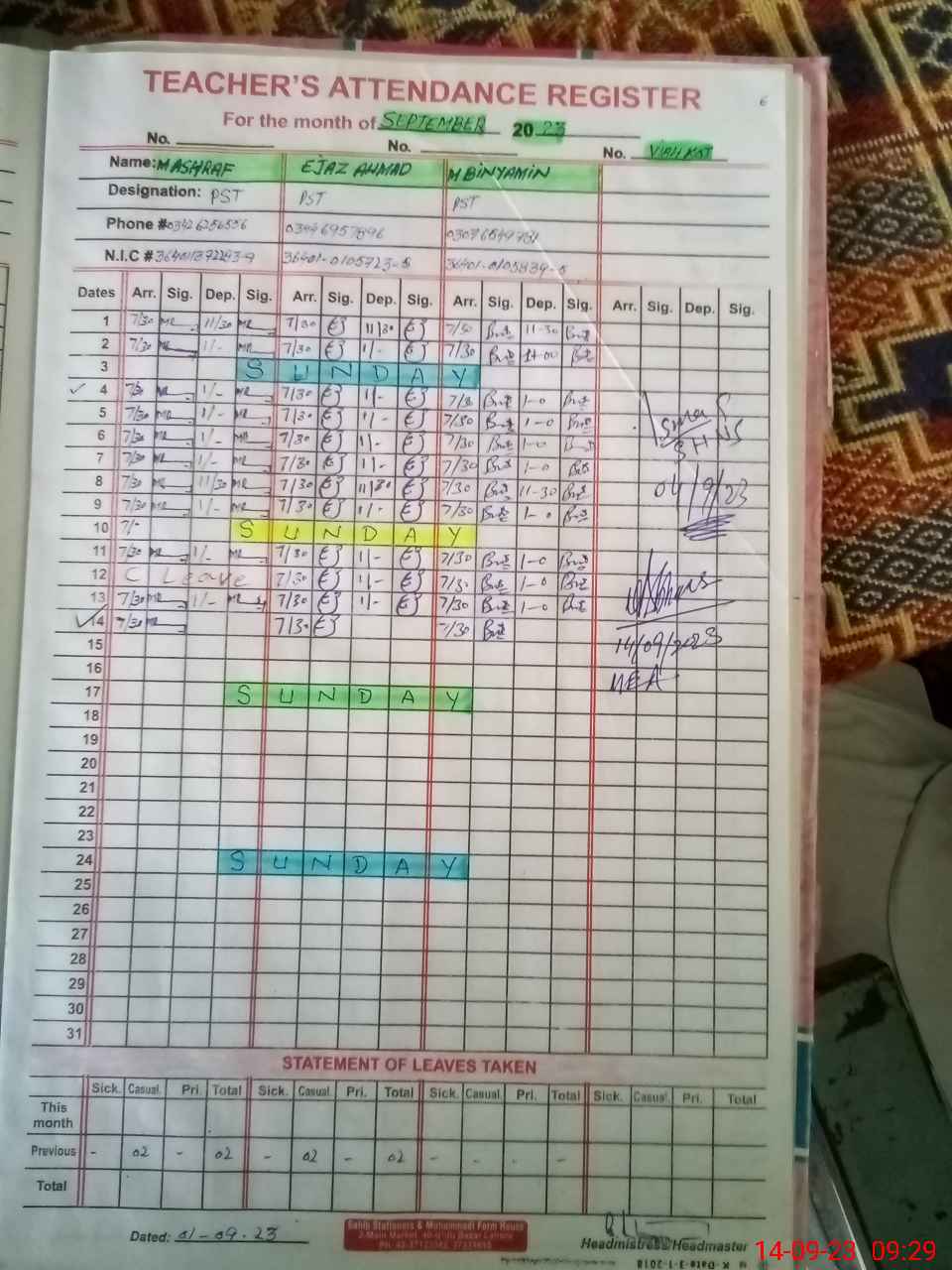 | Name: MU**** AS**** Designation: (School Headmaster's/Headmistress's) PST Phone/Cell Number: 03**** |