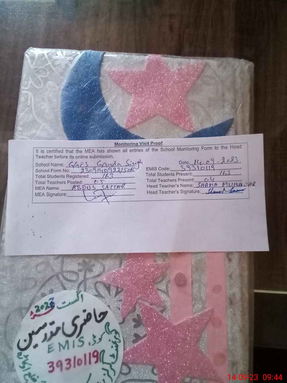 | EMIS Code: 39310119 | Name of School: GGES CHAK GANDA SINGH | |||