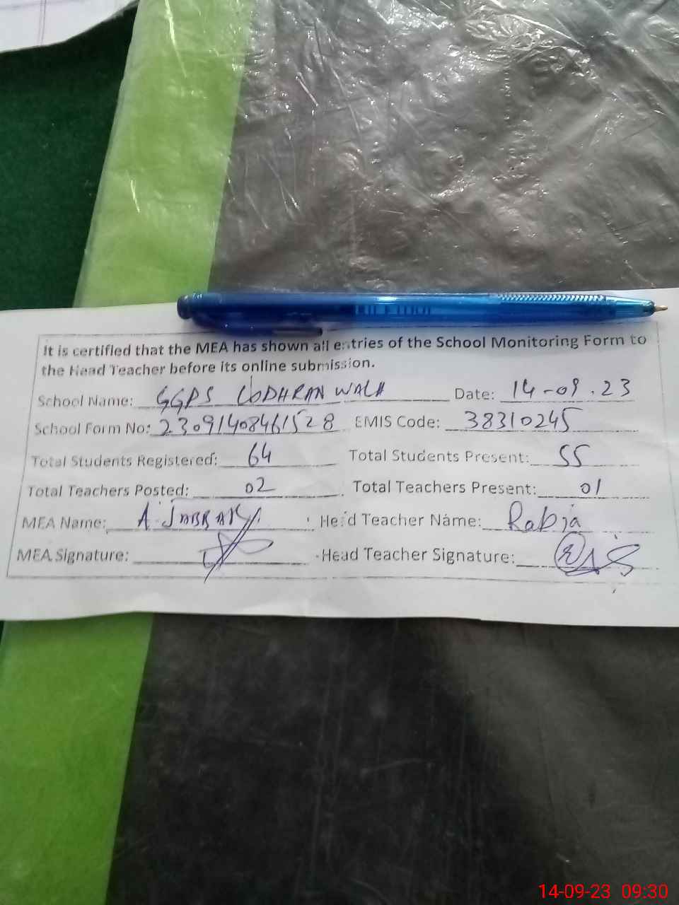 | EMIS Code: 38310245 | Name of School: GGPS LODHRAN WALA | |||