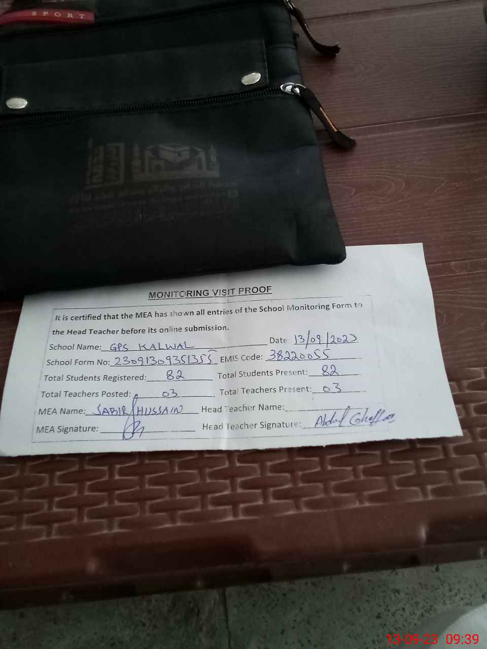 | EMIS Code: 38220055 | Name of School: GPS KALWAL | |||