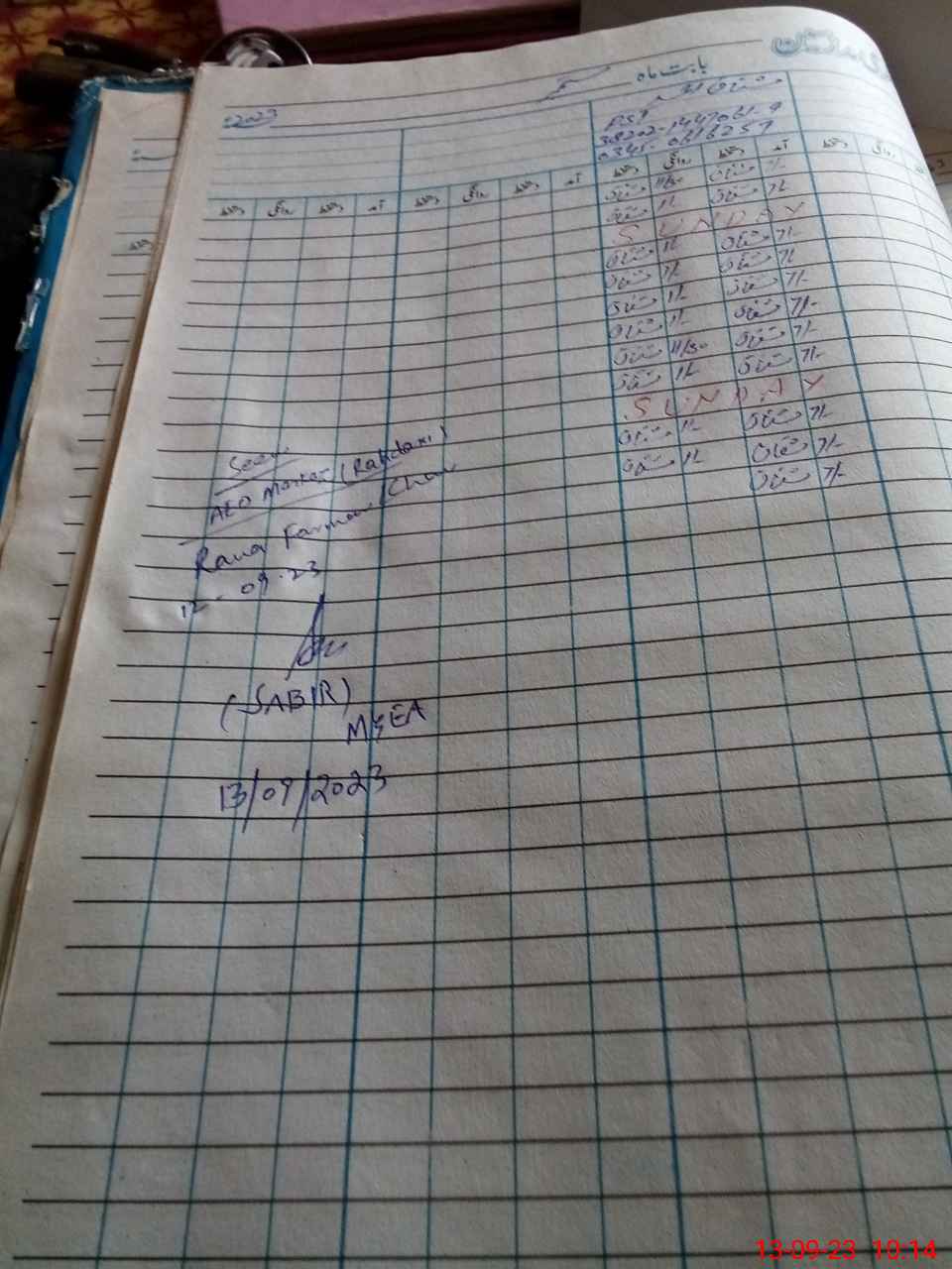 | Name of AEO: | AEO Contact No.: | MEA Phone#: 03**** | ||