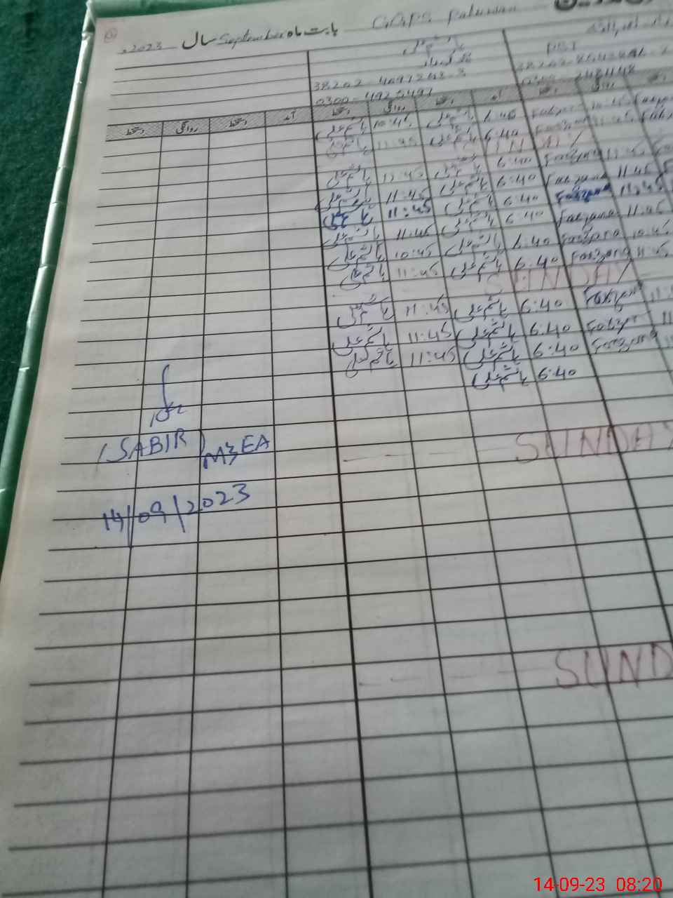 | Monitoring Date: 14-09-2023 | Start Time: 14-09-2023 08:13 AM | End Time: 14-09-2023 08:42 AM | Name of MEA: SA**** HU**** | |