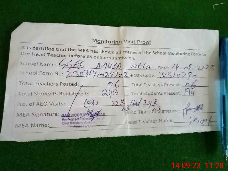 | EMIS Code: 31310790 | Name of School: GGES MUSA WALA | |||