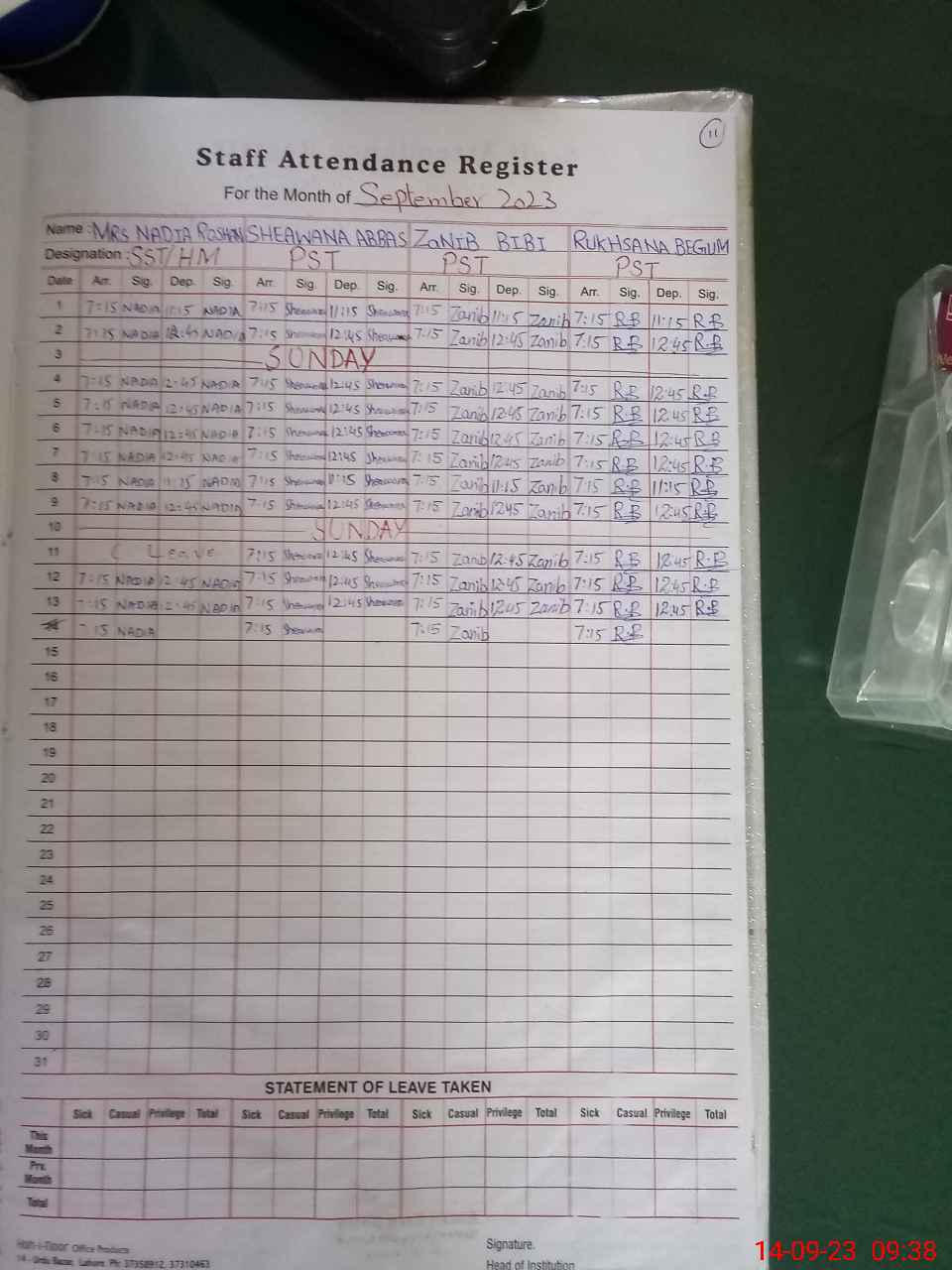 | Name: NA**** RO**** Designation: (School Headmaster's/Headmistress's) SST (General) Phone/Cell Number: 03**** |