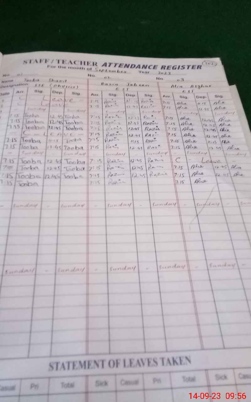 | Name: To**** Sh**** Designation: (School Headmaster's/Headmistress's) IC HM S S E (Physics) Phone/Cell Number: 03**** |