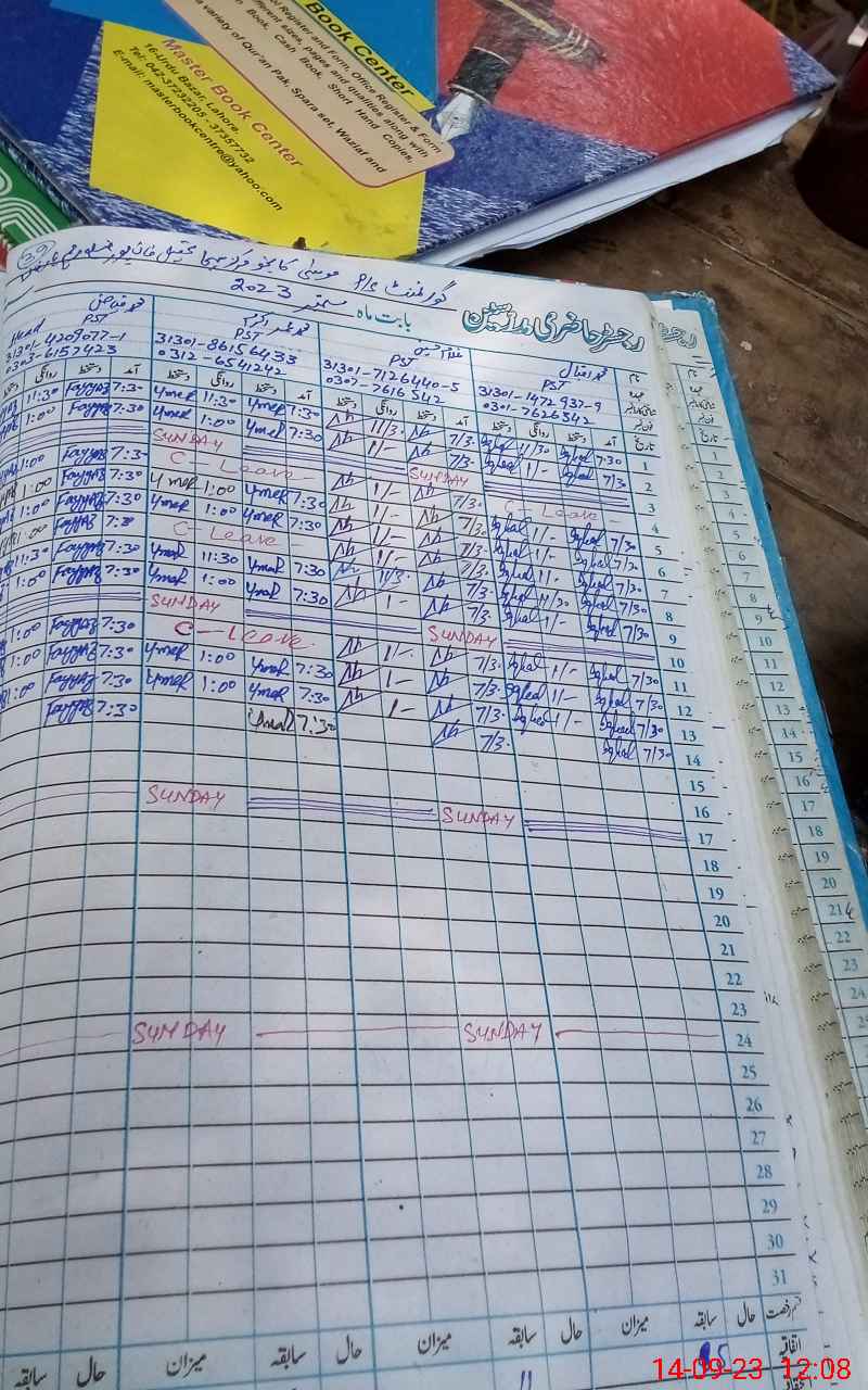 | CNIC | Full Name | Designation | R/C | Absence During Last Calender Month |