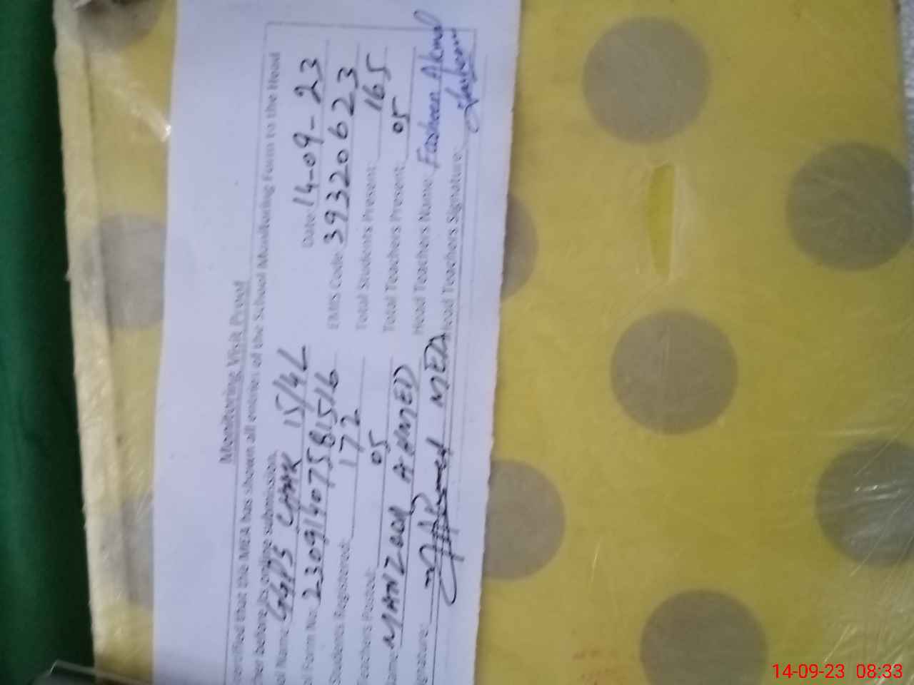| Certified that this School was Inspected by the Undersigned MEA/DMO Today and the Information Stated Above is as Per Record. | |||||